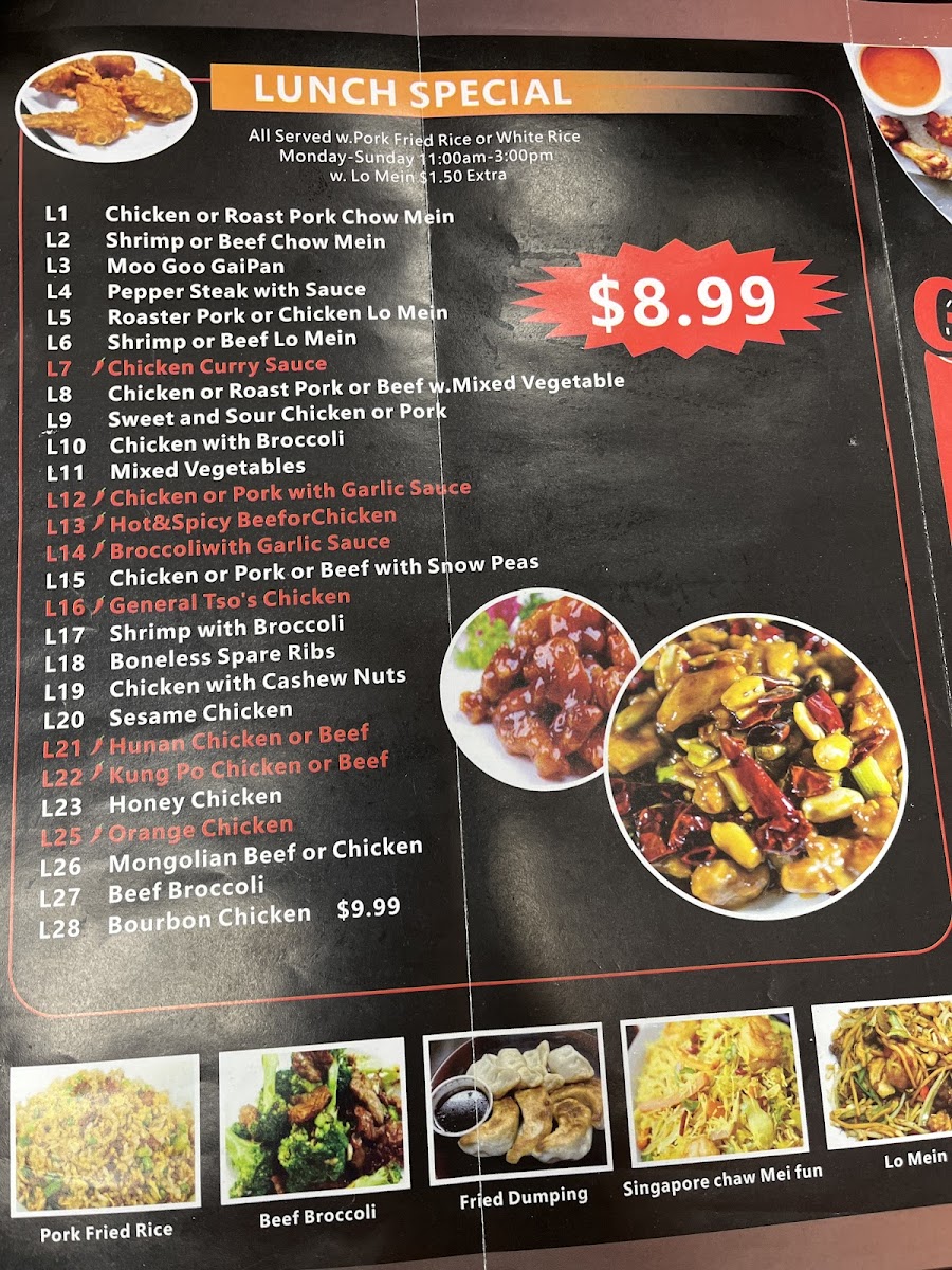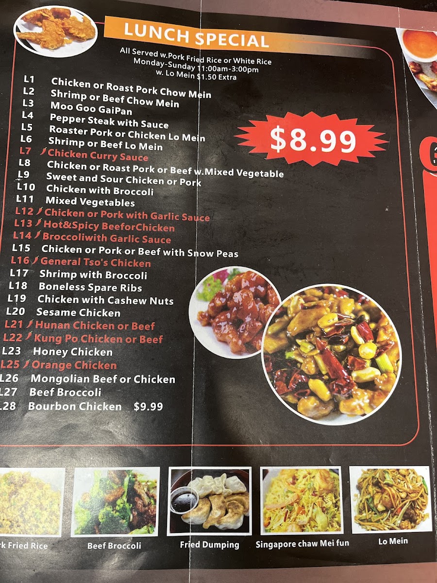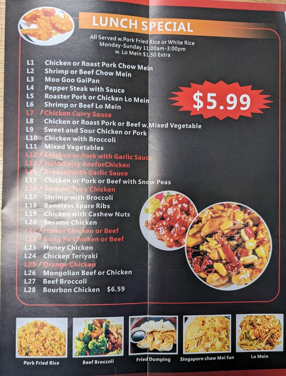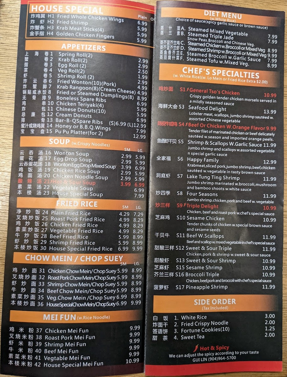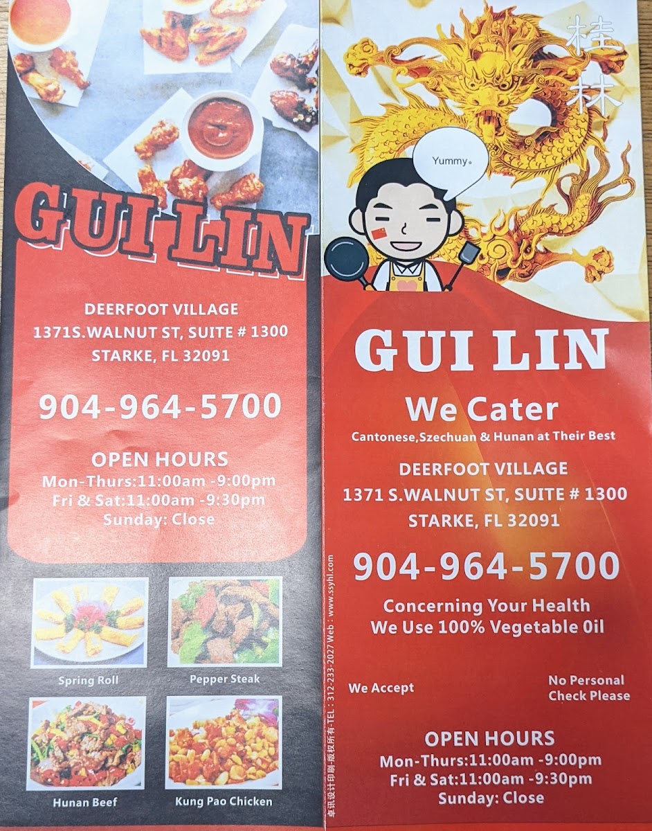 At Lingui Chinese Restaurant Menu, you'll find a delightful array of authentic Chinese dishes that are sure to satisfy any craving. Located at 1371 S Walnut St #1300 in Starke, FL, this cozy spot brings a taste of traditional Chinese flavors with a modern twist. Whether you’re in the mood for a hearty bowl of noodles, a flavorful stir-fry, or a comforting hot and sour soup, their menu has something for everyone.